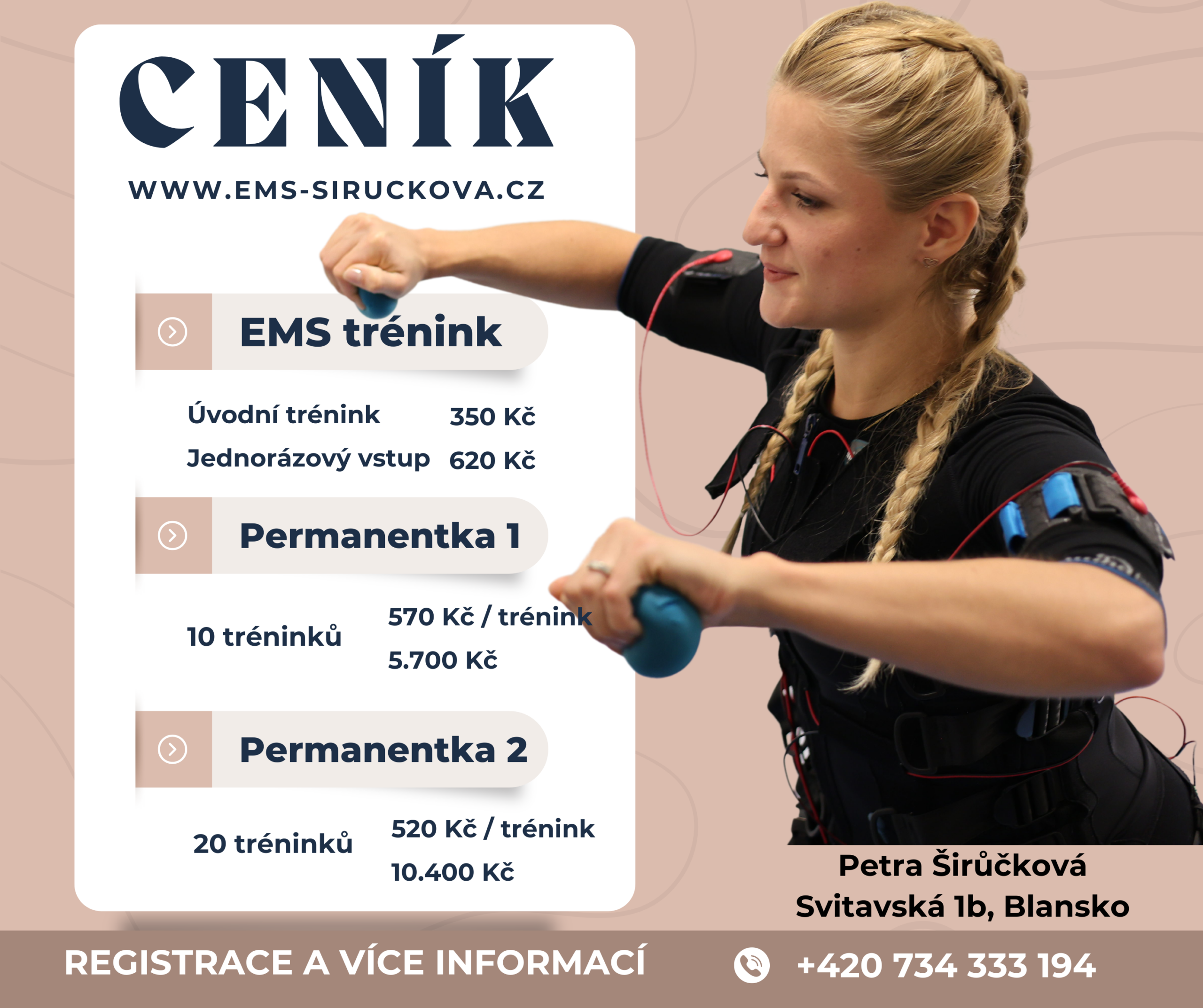 Se sedavým zaměstnáním přišly i problémy s bolestmi zad a neúprosně rostoucími kilogramy. To mě přivedlo k pohybu a zdravému životnímu stylu, a právě tady jsem poprvé narazila na EMS tréninky. Ty mě tak nadchly, že jsem začala přemýšlet, jak je přiblížit i ostatním.